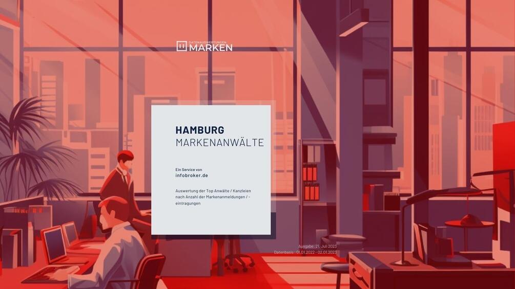 Unsere Auswertung zu Markenanwälten für Hamburg hat die Markenanmeldungen zu Anwälten mit der Adressangabe Hamburg in einem Ranking nach Anzahl der Marken zusammengefasst.