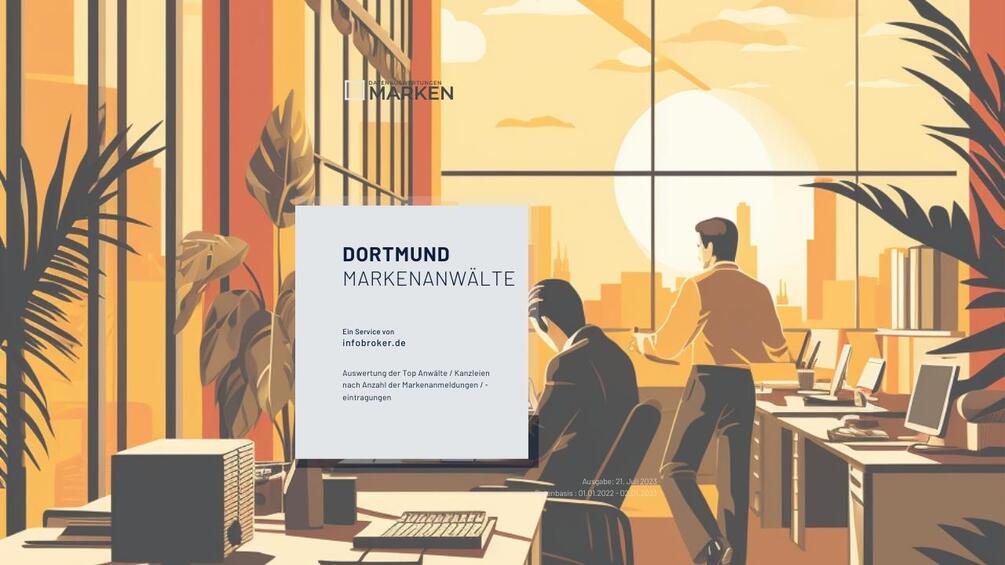 Unsere Auswertung zu Markenanwälten für Dortmund hat die Markenanmeldungen zu Anwälten mit der Adressangabe Dortmund in einem Ranking nach Anzahl der Marken zusammengefasst.